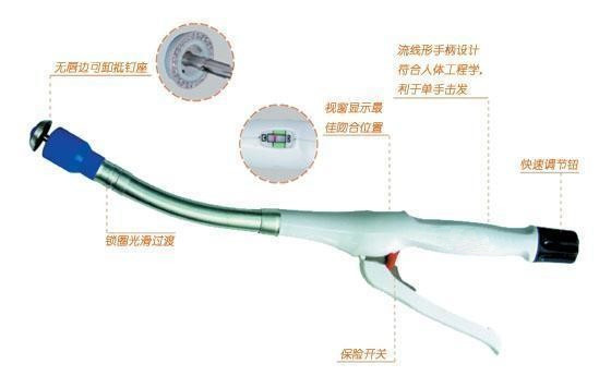 一(yī)次性胃腸吻合器(qì)是(shì)在組織、器(qì)官上(shàng)擊入成圓形排列的(de)兩排互相(xiàng)交錯(cuò)的(de)縫★釘,并同時(shí)以環形刀(dāo)将其內(nèi)側的(de)組織切斷。應用(yòng)該器(qì)械可(kě)以節省手術(shù)時(shí)間(jiān)、減少(shǎo)病員(yu→án)出血、能(néng)更方便地(dì)進行(xíng)手術(shù)縫合。本器(qì)械有(yǒu)六 種規格以适應不(bù)同組織。