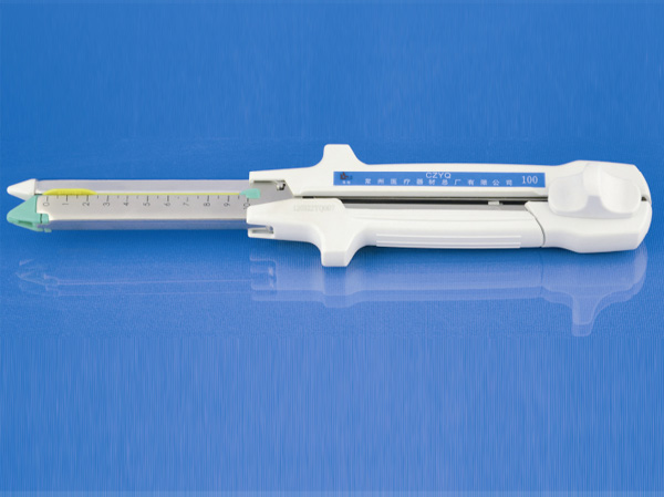 一(yī)次性直線切割吻合器(qì)是(shì)在組織上(shàng)擊入成直線排列的(de)四排互相(xiàng)交錯(cuò)的(de)縫釘,組件(jiàn)內(nèi)的(de)切割刀(dāo)同步将組織離(lí)斷。應用(yòng)該器(qì)械可(kě)以節省手術(shù)時(shí)間(jiān)、減少(shǎo)≤病員(yuán)出血、能(néng)更方便地(dì)進行(xíng)手術(shù)縫合。本器(qì)械有(yǒu)六種規格以适應不(bù)同組織:55mm,60mm,75mm§,80mm,90mm,100mm。另外(wài)可(kě)調的(de)縫釘高(gāo)度分(fēn)别有(yǒu):2.5mm,3.85和(hé)4.5mm,以彌補各種厚度的(de)組織。